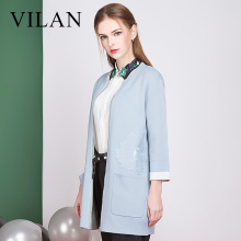 vilan/慧兰专柜正品秋装新款圆领针织开衫毛织外套中长外套女