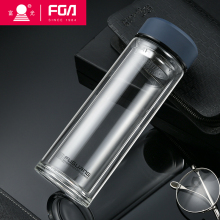 富光玻璃杯办公杯双层玻璃水杯家用便携带盖过滤隔热男女杯280ml