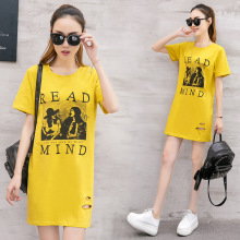 2017夏季新款时尚百搭女装卡通人物字母印花短袖连衣裙淑女t恤