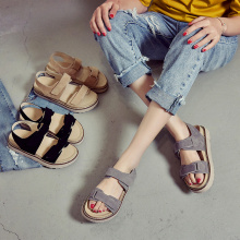 女鞋夏凉鞋新款中跟百搭平底学生厚底凉鞋女松糕鞋简约罗马鞋休闲