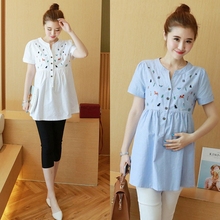 孕妇套装夏装时尚款2017孕妇新款衬衫短袖加托腹裤子休闲两件套潮