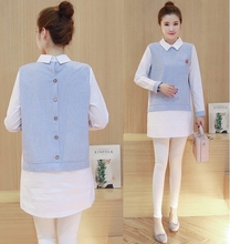 春秋孕妇套装2017新款孕妇纯棉衬衫长袖长裤托腹时尚款休闲两件套