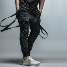 GD权志龙HBA小脚裤潮纯棉休闲运动束脚裤多绳工装假吊带扎脚卫裤