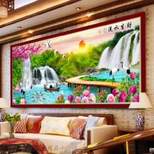 钻石画满钻客厅新款5d贴钻十字绣流水生财钻石绣山水画砖石秀风景