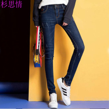 杉思情春季新款中腰修身小脚裤牛仔裤女装长裤子大码女裤铅笔裤