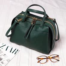 2017新款时尚头层牛皮手提包女单肩斜跨真皮女包休闲百搭饺子包潮