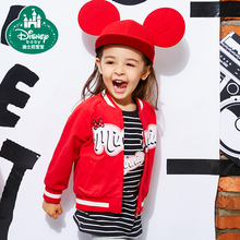 迪士尼宝宝童装女童棒球外套春秋款儿童短款长袖上衣宝宝棒球服潮