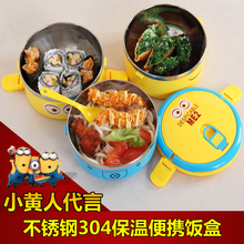 304不锈钢保温l饭盒 保温桶餐盒3层手提密封防漏学生小黄人便当盒