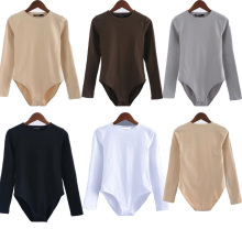 7春夏女款纯色连体衣圆领长袖T恤防走光打底上衣弹力修身成人连体