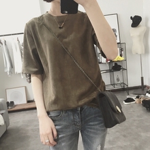 猫猫。糖果多色舒适韩国麂皮绒纯色圆领短袖T恤衫女2017春装新款