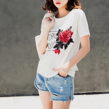刺绣t恤女短袖2017夏季新款字母印花宽松半袖上衣韩版百搭打底衫