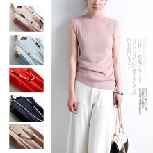 一见倾心!谁穿谁美!!隐透半高领丝麻无袖针织衫女糖果色上衣