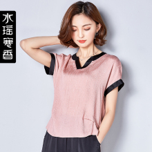 水瑶寒香真丝T恤2017夏装新款短袖真丝上衣桑蚕丝舒适大码衬衫女