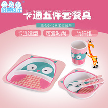 好贝比儿童环保竹纤维分格餐盘吃辅食饭碗叉勺子卡通餐具5件套装