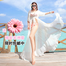 夏装女雪纺开衫中长袖宽松大码比基尼长款罩衫外套海边沙滩防晒服