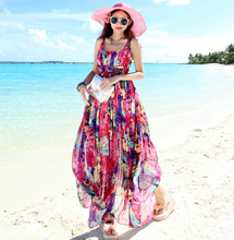 2017夏海边度假沙滩裙修身显瘦波西米亚雪纺两件套连衣裙印花长裙