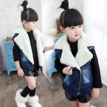 女童装上衣新款欧美风羊羔毛加厚保暖时尚可爱中大童冬装牛仔马甲