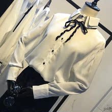 厚雪纺衬衫女长袖上衣宽松甜美韩版百搭学生显瘦可爱学院风小清新