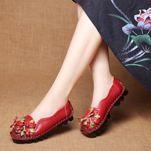 春季复古手工民族风妈妈鞋花朵平底单鞋软底女士平跟皮鞋休闲女鞋