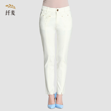 纤麦大码女装裤子女胖mm200斤秋装新款2016修身纯色九分裤女