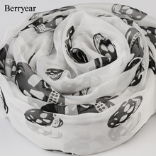 Berryear欧美风白色骷髅头真丝丝巾女春秋百搭长款桑蚕丝围巾披肩