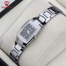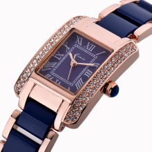 正品韩版镶钻女士防水陶瓷手表 长方形时尚女表 热卖时装表手链表