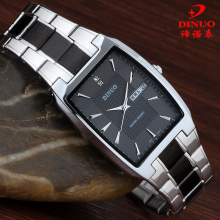 正品DINUO谛诺手表 男士双历石英表 超薄长方形防水腕表 商务男表