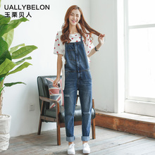 减龄牛仔裤背带裤女春夏2017薄款磨破宽松休闲显瘦破洞长裤韩版潮