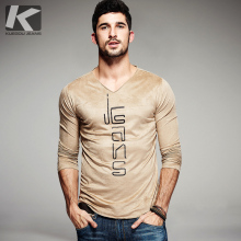 [包邮]Kuegou 男士长袖T恤 男欧美V领T恤 欧美春季仿麂皮衣服2033