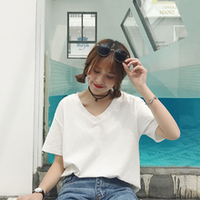 EKOOL宽松显瘦V领短袖T恤韩版夏季简约棉麻打底女上衣体恤学生T