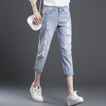 天天特价韩版夏装大码显瘦宽松bf破洞牛仔裤女长裤小脚九分哈伦裤