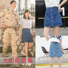 【天天特价】韩版牛仔裙a型半身裙夏前排扣高腰直筒A字短裙包臀女