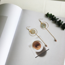 手作极简风几何圆形耳坠耳钉韩国气质贝壳长款流苏简约耳环耳饰女
