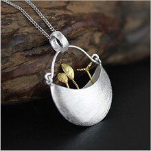 925纯银饰品原创手工设计简洁立体花草蝴蝶吊坠仿真女款项饰送礼