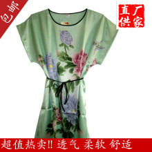 厂家批发 苏州丝绸女春夏季薄款短袖国色天香牡丹仿真丝睡衣睡裙