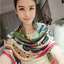 2017年春秋季新款图案超大140真丝斜纹绸大方巾丝巾女围巾H家披肩