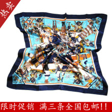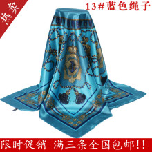 2017年新款图案蓝色绳子H90cm仿真丝大方巾春秋季百搭女丝巾送礼