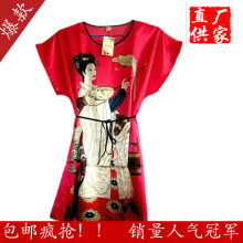 厂家批发直销 苏州春夏款短袖超薄真丝美女图丝绸睡衣睡裙家居服