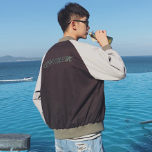春装男士新款韩版日系字母刺绣撞色棒球领夹克男装学生插肩袖潮