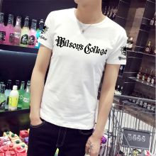 2017夏季新款韩版日系潮男装个性文字骷髅头印花修身男士短袖t恤