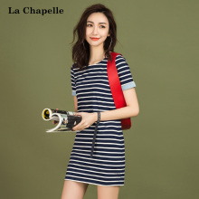 拉夏贝尔2017夏季新款 修身显瘦条纹短裙圆领短袖连衣裙1T000144