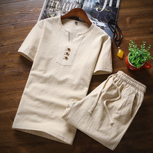 中年中老年人爸爸薄款夏季运动服套装短袖短裤休闲卫衣亚麻男新款