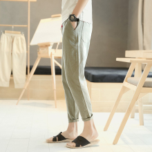 新款夏季亚麻九分裤男潮流哈伦裤棉麻休闲裤百搭修身小脚男士裤子