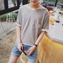 2016夏季男士青年文艺拼接短袖T恤韩版宽松个性胸前口袋半袖衫
