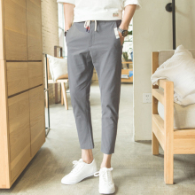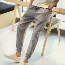 2017 新款男士九分裤修身薄款亚麻哈伦裤百搭小脚裤韩版束脚裤