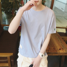 夏天新款男士圆领蝙蝠袖宽松短袖T恤韩版潮男落肩体恤衫文艺青年