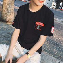 2016夏季新款潮男简约宽松字母贴布短袖T恤韩版男青年薄款休闲T恤