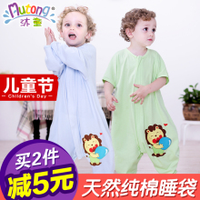 【天天特价】沐童宝宝短袖夏薄款分腿婴儿纯棉空调房儿童防踢睡袋