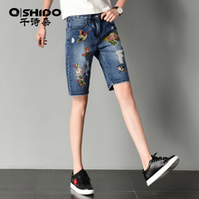 刺绣牛仔裤女春夏季2017新款短裤韩版四分裤中裤学生高腰五分裤女