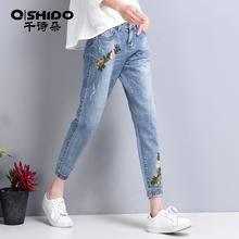 束脚绣花牛仔裤女九分裤2017春夏季新款宽松韩版显瘦刺绣直筒裤薄